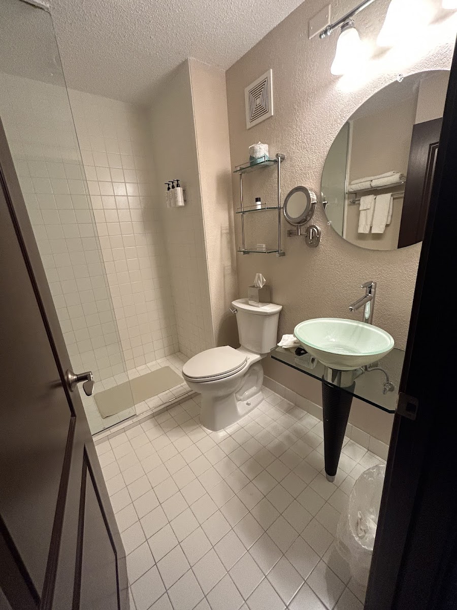 The studio queen room was nice, but spartan. A bedside table is surely needed. No place to put glasses, phone, water bottle except on top of the bookshelf headboard. Lighting is kinda funky. Either too much or too little. Room was clean and fairly modern (sliding barn door into bathroom with walk-in shower). Fantastic hot breakfast included in the price of the stay! And a very friendly and attentive staff. (When I asked about the complimentary drink per person, in the lounge, was told they stopped doing that in January - this was late September. Website needs some work! And the price of two half-full wine glasses was $21.60! It ain't Chicago!!!) All in all, a good experience for the price.